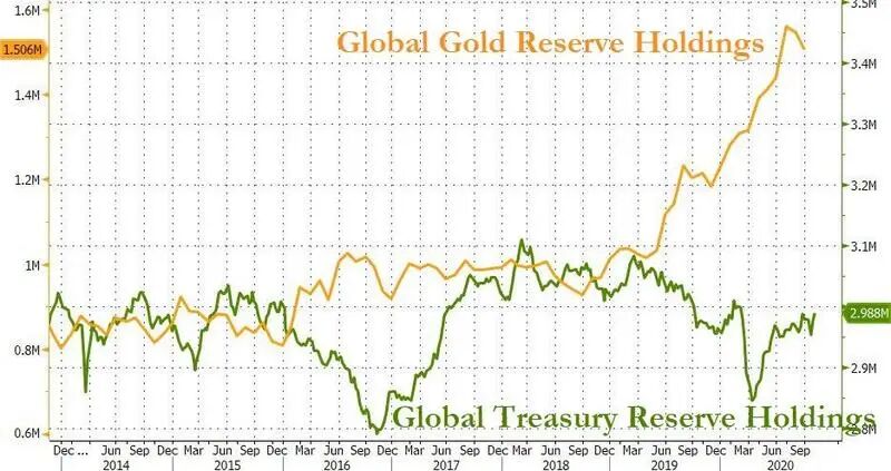 很明显,新冠病毒在美国的持续蔓延将加快美国的印钞放水速度,很显然,目前,美联储在其货币政策工具上已经接近倾家荡产,然而,凯恩斯主义经济学并不是万能药,这也决定了美元价值和购买力会被不断稀释,这一点,从全球各货币当局减持美国国债和净增持黄金的力度也可以说明问题,世界黄金协会在11月发布的报告进一步显示,超过20%的央行计划在未来一年内继续增持,而2019年这一比例仅为8%。