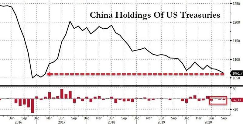 据美国财政部11月18日最新报告显示,全球央行正在远离美债市场已经在过去的26个月中出现22个月净减持美债,其中,中国所持美债也已连续四个月大幅下降,截止9月的前24个月,中国累计抛售了约1660亿美债,正如下图数据所示,中国在今年6月至9月共连续抛售了220亿美债,而在此前的3月和4月也分别减持107亿和88亿美债,紧接着,据俄卫星通讯社日前援引观察人士估计,中国接下去完全有可能抛售规模高达7000亿美元的美债。