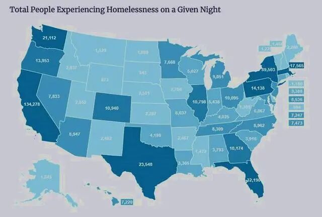 不仅于此,美国住房和城市发展部发布的2019年度无家可归评估报告显示,在任何一个晚上,共有656874人在经历无家可归,这个数字代表了美国每10000人中有19人无家可归,所有经历无家可归者的人中基本上分布在加州,纽约,佛罗里达,德克萨斯和华盛顿。这就进一步佐证了本文前面提及的,罗杰斯发出的,债务无处不在,印钞无处不在,最终美国经济要付出代价这一警告。