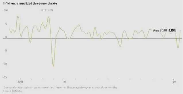 路透社在上周对90位分析师的最新调查结果显示,美国主权债券实质收益率远低于零,并暗示未来一年实质报酬也将呈现负值,美联储利率点阵图已经显示至少到2023年利率将在零水平,并允许通胀高于2%,据美国金融网站ZeroHedge在11月29日援引的最新预测数据显示,如果实际房价包括在CPI衡量中,那么美国通货膨胀在10月将是3%。