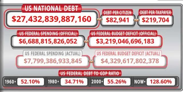 对于美国经济大萧条的现象,美国前国会议员罗恩·保罗博士(Ron Paul)认为,比二战时期的冲击还要大,冠状病毒还正在加剧美国经济巨大债务负担。而事情的一个新变化是,截至12月14日,美国联邦债务总额已经激增至创纪录的27.43万亿美元的创纪录水平,为1958年刚有赤字时的约100倍。