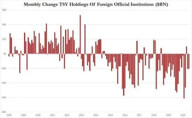 Zerohedge不久前援引相关媒体及专家分析称,随着美国联邦赤字激增,增加违约风险等因素,正常情况下,中国或将逐步出售美国国债的20%,如果风险因素加大,或有清零美债,抛售高达1万亿美元美债规模的可能。