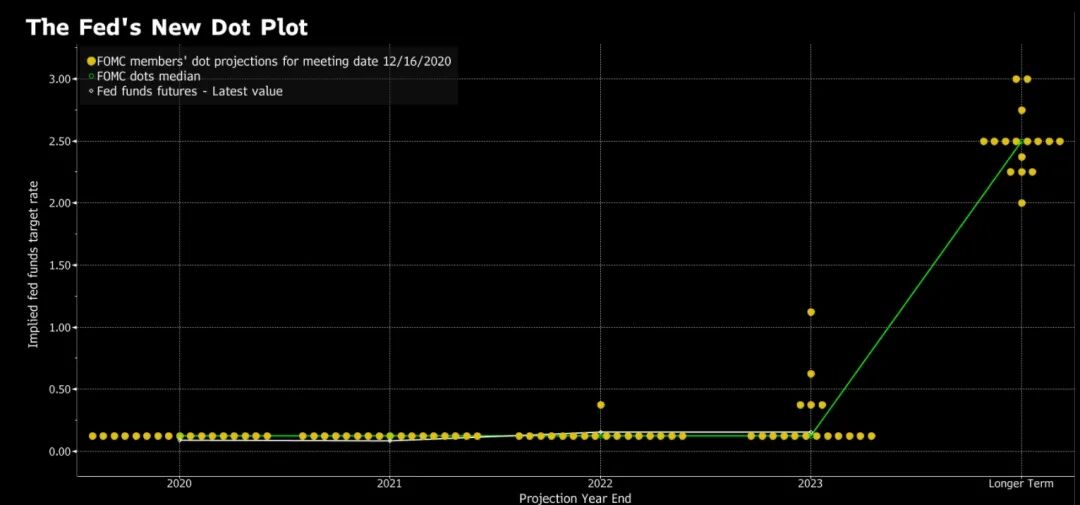 目前,美国就业增长已经在开始放缓,而且新冠病毒感染人数破纪录的激增已经引起了人们对美国更多企业即将倒闭的担忧,彭博调查显示,美联储在12月17日提供的美国债券购买计划新指引已经明确表示更多刺激举措。美联储重申维持利率0-0.25%不变,直至2023年末,这符合市场预期。