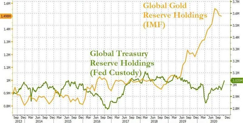 与此同时进行的是,全球央行的外储管理者们逐步提高了非美元货币资产和黄金的配置,虽然,最近二个多月全球央行购买黄金的速度在下降,但上面的图表反映出全球央行去美债化的趋势仍在继续,而且接下去将一直是这样,这在美联储在12月17日公布的利率会议上暗示更宽松的货币政策和维持零利率至2023年底的背景下变得更加明确。(完)