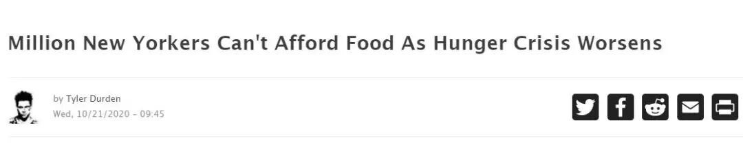 彭博社前不久报道称,根据调查显示,预计到年底,“与饥饿作斗争”的美国人人数将增加到“超过5000万”…由于缺乏收入,许多美国人大大削减了他们的食物预算,现在其他人每天只吃一两顿饭,而且我们看到全国各地的食物银行的需求比以往任何时候都要多。这相当于美国总人口的近六分之一的美国人或面临饥饿。不出所料,事情果然有了新进展。
