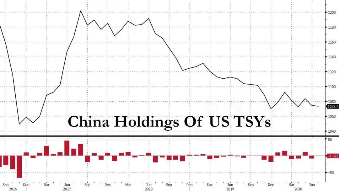 值得一提的是,中国目前持有美债总额为1.073万亿美元。在截至7月的23个月中,中国累计持续抛售了约1500亿美债。