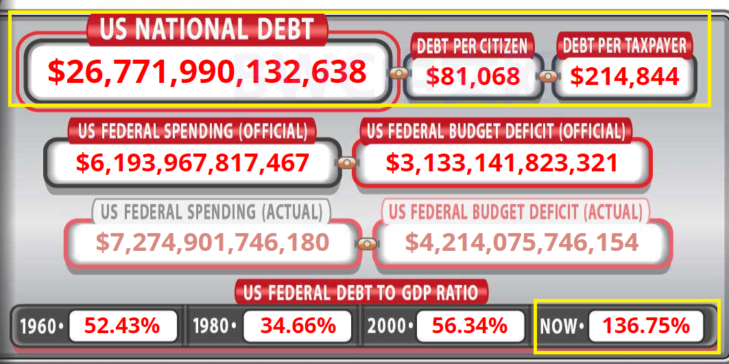 如下图,截至9月18日,美国联邦债务总额已高达约27万亿美元,创历史纪录。每个美国公民(男人,女人,孩子)为此背负81,068美元债务,而每个美国纳税人则为此背负高达214,844美元债务。对此,希夫称,美国财政部和美联储像罪犯一样抢走了美国民众的钱。
