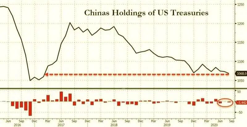 比如,俄罗斯已经清仓了达90%仓位的美债,而中国8月也减持54亿美债,这是自5月以来的连续第三个月抛售,而在此之前的23个月内,中国已经共减持了1501亿美债,所持美债仓位量降至2017年3月以来的最低水平,也就是说中国已开始持续大幅减持美债,美国石英网站分析认为,正常情况下,中国或将逐步出售美国国债的20%,如果风险因素加大,也有清零美债的可能。