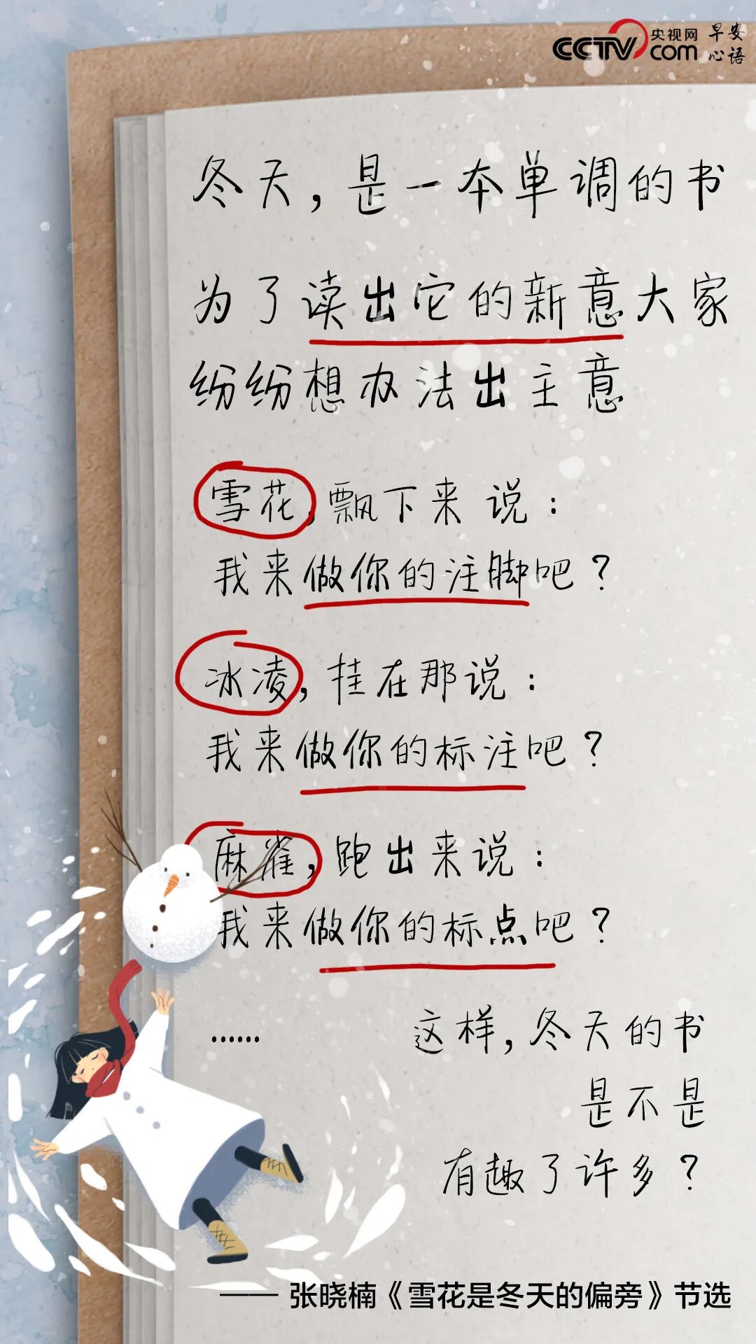 每一场雪都是久别重逢带来纷扬的心事亦有无言的喜悦世间的冬天来来去去已有上千回扑朔着的弥漫开的落定了的人间几多归宿皆可归于一片冰天雪地在有情人的字句间整个冬天“下”不尽的多是浪漫初雪来时你最想和谁一起看雪?