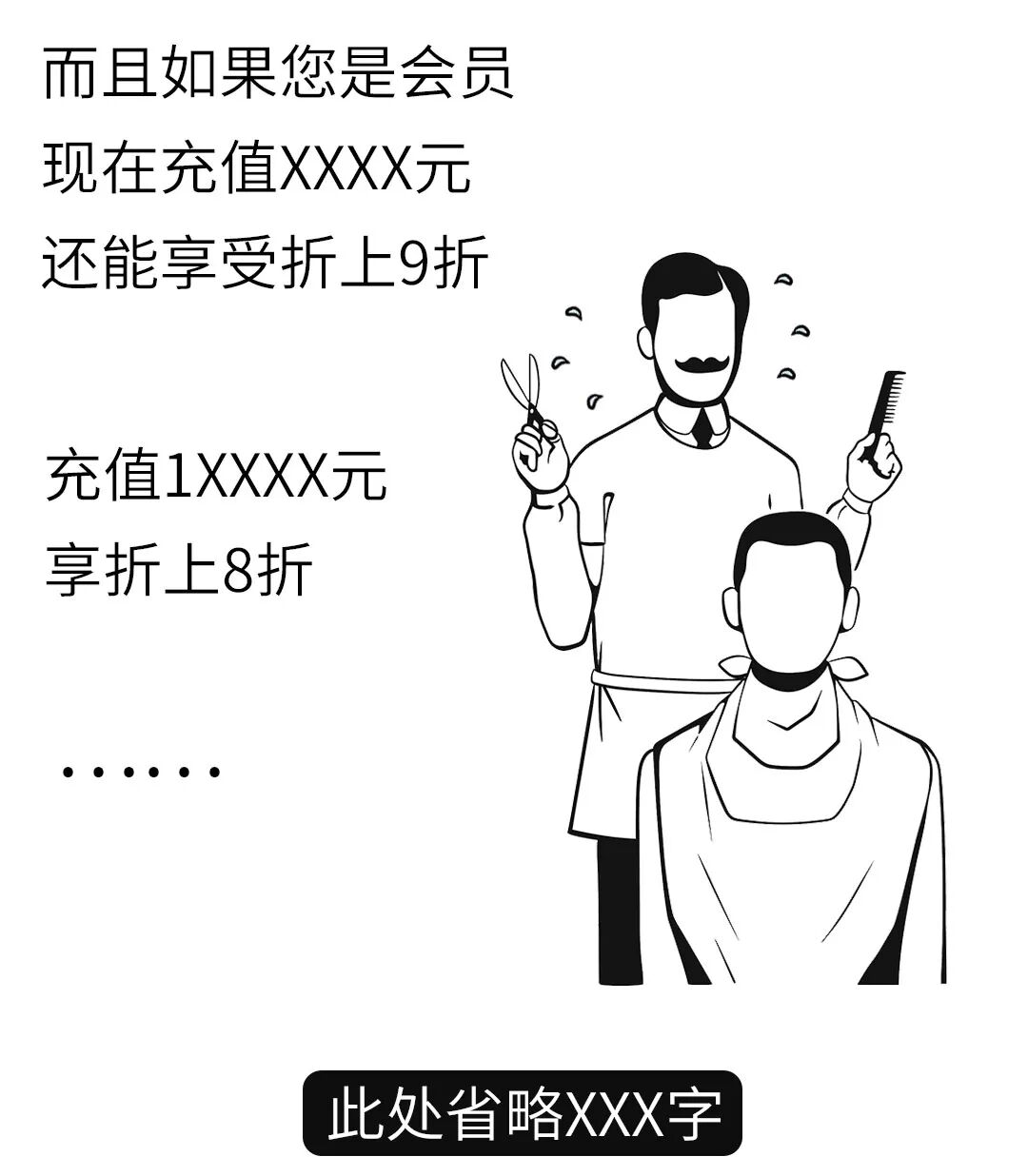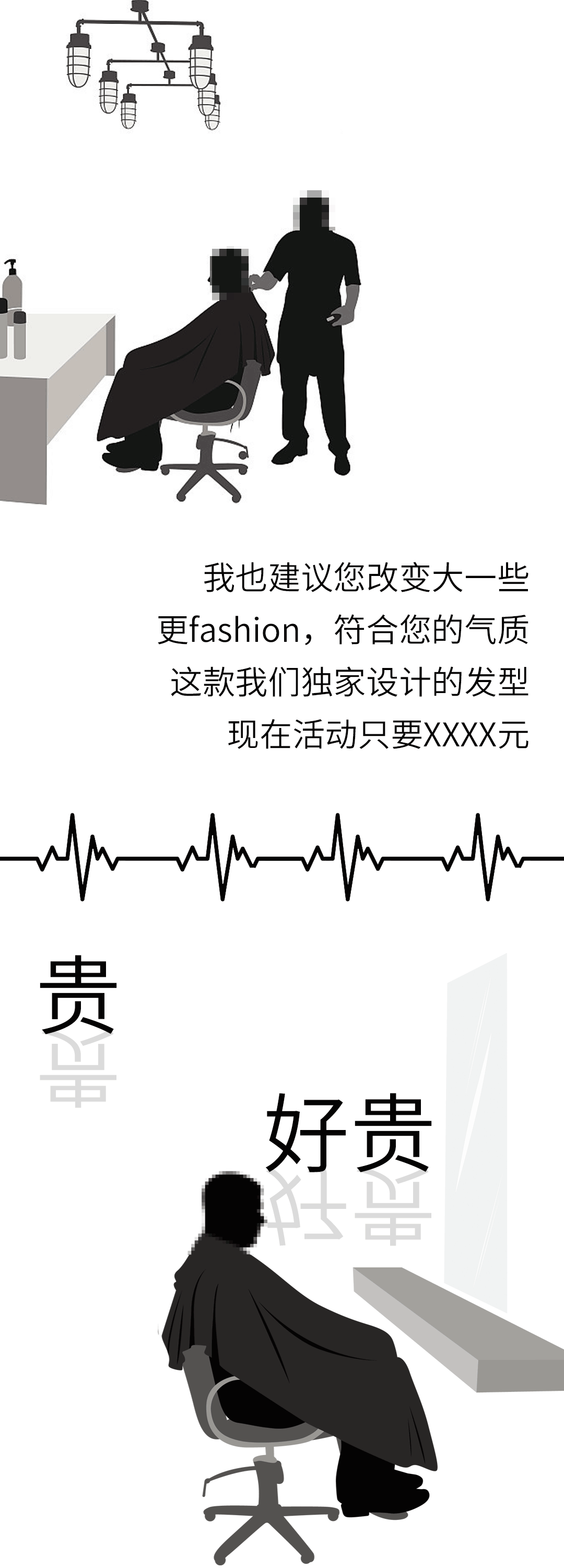 “烫发最便宜的398,但是伤头发”“这款2998我们独家代理护发养发”“还有这款X国进口1998的不伤发质”“现在充值1.5万,3折只要599.4元”“首席设计师洗剪吹单次108”“现在充值1万享3折,只要32.4元”