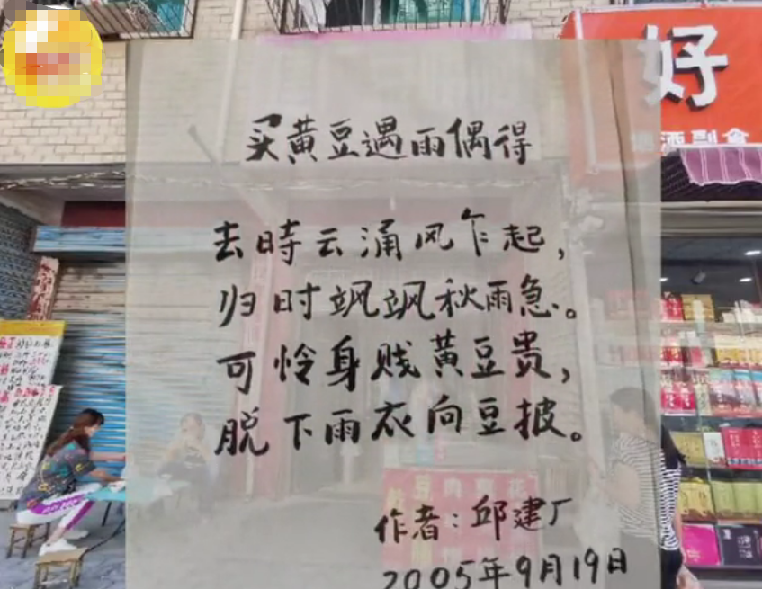 邱老板说写诗让他感受到生活的快乐感受到时代的变迁贴在墙上以后很多客人也喜欢还有人拍照发到网上视频登上热搜以后网友们也纷纷点赞↓↓“有趣的灵魂百里挑一”“被豆腐脑耽误的诗人”“自己开心能把日子过成诗”