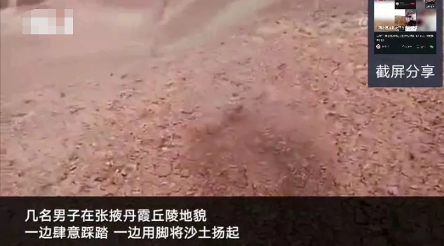 2018年,有4名游客在甘肃张掖七彩丹霞景区踩踏破坏丹霞地貌,还拍摄视频炫耀:“我破坏了六千年的(原始地貌)”。后工作人员称部分区段踩踏严重,破坏了保护层,已无法修复。