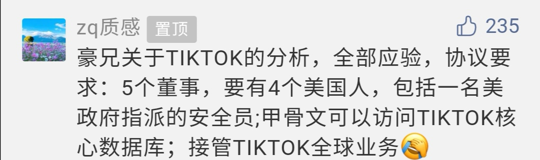所以,占豪在前天文章《原创丨TikTok达成共识?特朗普也支持?事情远没那么简单!》中就把所有可能的问题都写了。为了避免文章太敏感,一些问题特意写得没那么细致,但意思都到了,有心人都能看得懂。