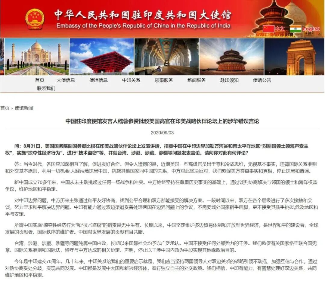 中国驻印大使馆的这番话,既是说给美国听的,更是说给印度听的,实际上是在告诉印方,美国的莫名其妙参与进来,只能让问题更复杂,而且很有可能危及地区和平与安定。