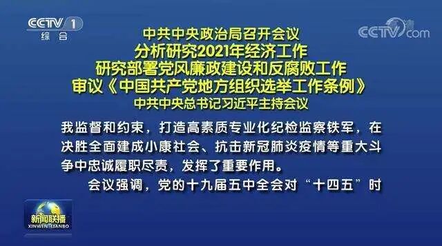 12月11日,中共中央政治局召开会议,其中最重要的议程就是分析研究2021年经济工作,在总结2020年成绩、不足的同时给2021年的经济工作定调。中央政治局一般每个季度都会召开会议分析经济形势,但年底这个会尤其重要,因为这场会议不但是对当年的总结,更担负着给来年经济定调的任务。