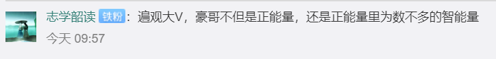 还有战友说:豪哥不但是正能量,还是智能量。正能量是本分,占豪会一以贯之;智能量,则是心之所向,占豪会带着战友们的鼓励和鞭策,努力提高自己。