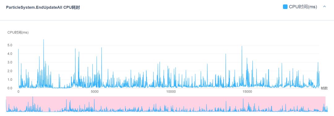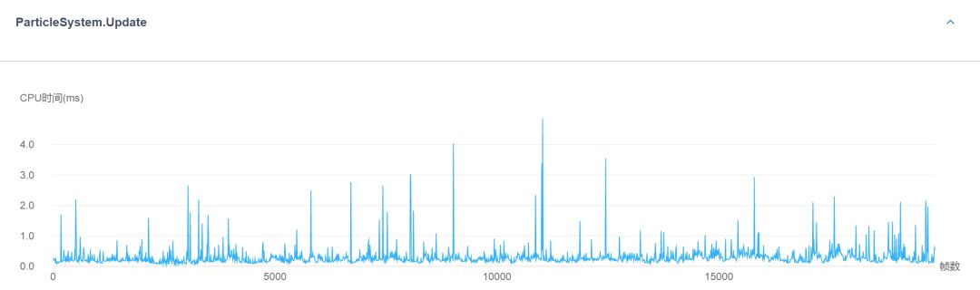 A:就目前的Unity引擎的原生功能而言,粒子系统中的状态更新(粒子的位置、朝向、触发事件等)均为CPU端开销,具体表现在ParticleSystem.Update和ParticleSystem.EndUpdateAll等函数中。具体可以查看UWA性能报告中的这两张图: