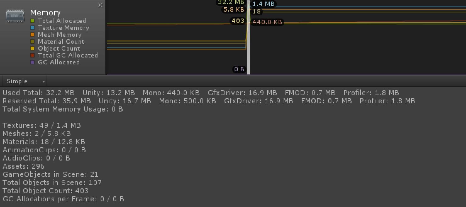 A:按照题主提供的例子,UWA进行了测试,在Unity 5.5.2版本中的Android真机上确实复现出了这个问题。 加载4个粒子特效,红米2设备上,加载前内存: