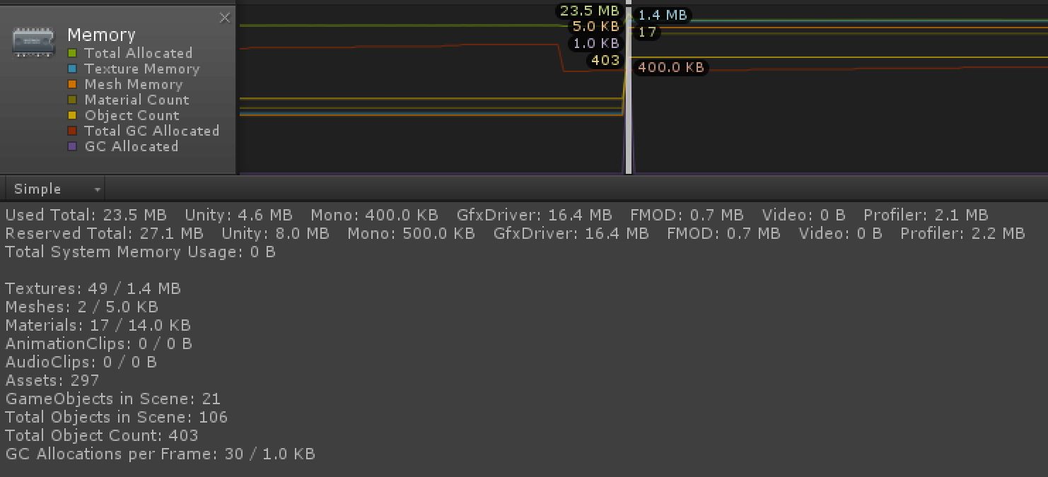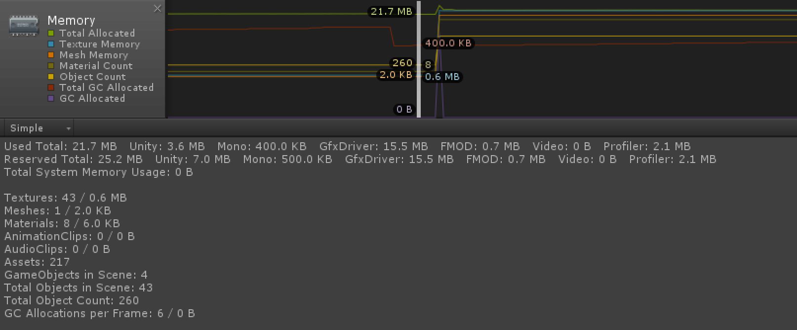 加载后内存,确实出现了Unity内存快速升高而又回落的“抖动”现象: