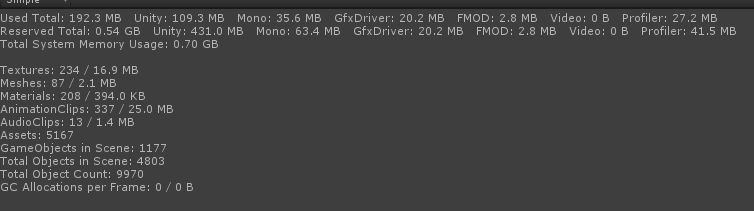 A:1. 题主这个数据是在Editor中做测试的结果吗?Reserverd比Used高出这么多确实不太合理;但如果是Editor中,那么Unity其实会做很多辅助操作,这些也确实是会占用内存的。所以,建议在真机中测试看看,看看这个差距是否会下来。但如果是在真机中,那么这个差距确实过高了,不太合理。