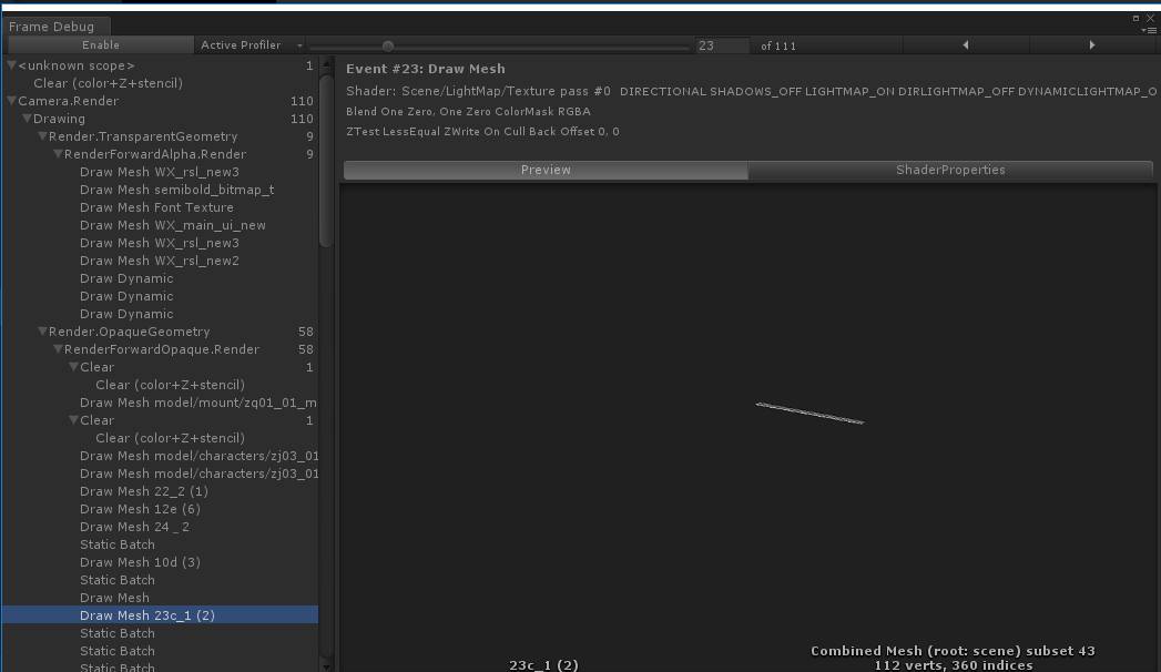 1个Setpass Call或者Batch,相当于是一次Render State的切换,而1个Draw Call则是CPU让GPU去进行渲染某一个Object的1次操作。在当前的移动设备中,1次Render State的切换要1个Draw Call本身要耗时。所以,Total Batches是我们较为建议的关注指标,也是UWA性能报告中所提供的Draw Call查看指标。而Frame Debugger中,其数量是与Total Batches相一致的,即查看的是每一个Batch的渲染物体。