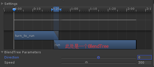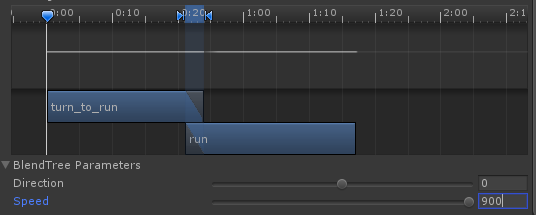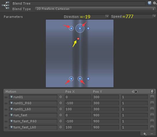 图例:run是一个BlendTree2D,当它的参数Speed=300时,和Speed=900时的长度是不一样的。