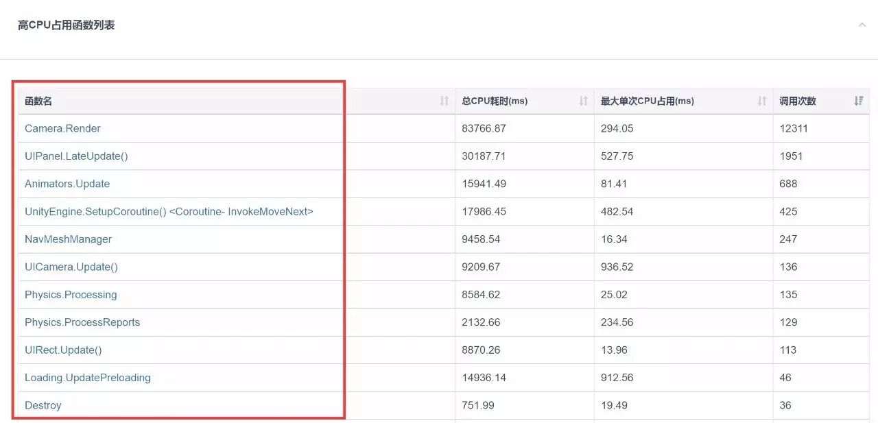 A:流畅这个问题并不一定是Draw Call的锅,具体还是需要查看研发项目的运行性能瓶颈到底在哪里,建议通过查看UWA 性能报告中的CPU耗时占用页面,来定位具体是哪些函数造成了性能瓶颈。