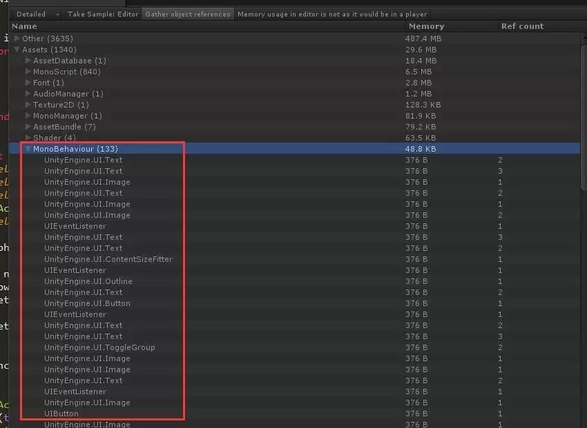 A:图中的MonoBehaviour也包含了被加载出来的Prefab上的组件(通过Load接口加载出来的),而这部分组件只能在Prefab被销毁的时候才会释放。