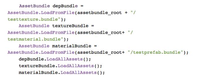 我们分别将这个3个AB使用相同的方式在一个空工程中做测试,代码如下:
