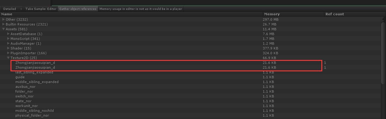 然后在Profile查看内存得到的结果,很明显在内存里面测试的纹理存在两份,这是为什么呢?