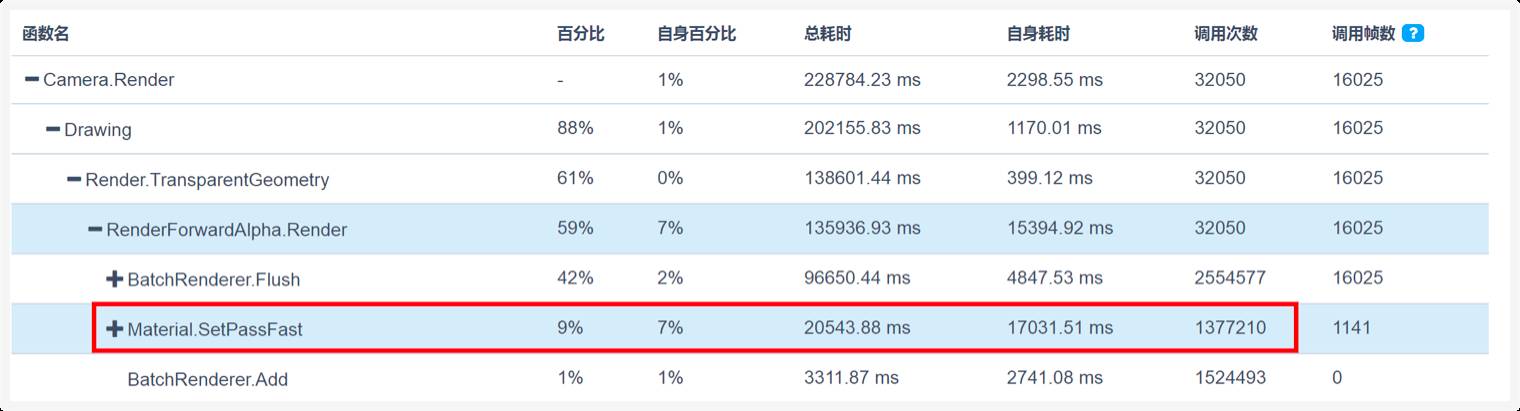 Q:请问为什么我项目渲染中Material.SetPassFast的开销这么高?这个该如何优化?