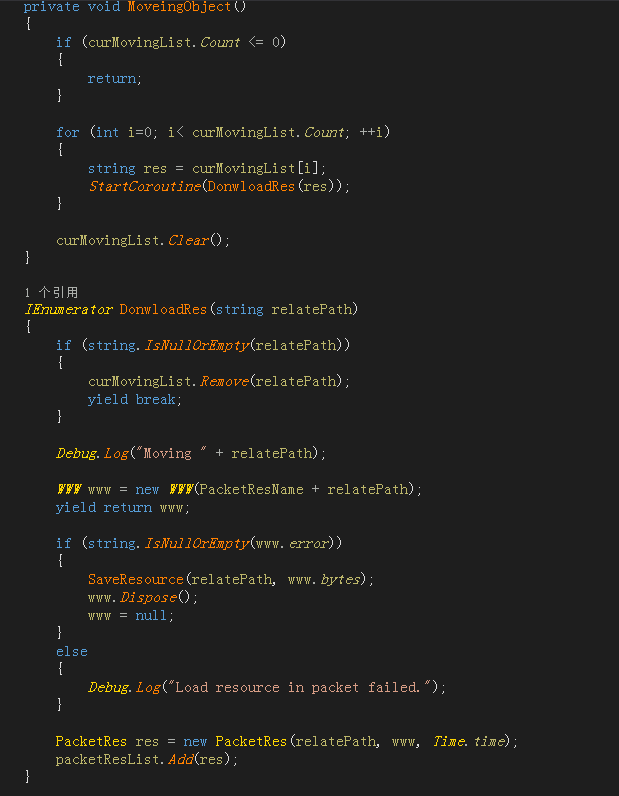 (3)代码中For循环每次仅开启一个Coroutine来加载AssetBundle,这个很可能会严重拖慢项目的加载速度,但这个问题只是效率问题,不会引起崩溃。
