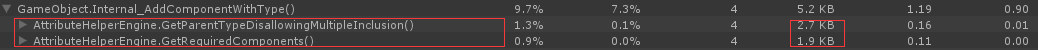 A:图中的两项GC Alloc是在进行AddComponent时不可避免的,因此只能通过尽量减少AddComponent的调用次数来进行优化。