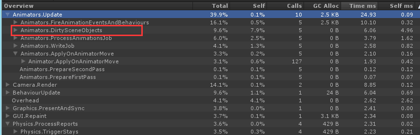 Q:对于Animators.DirtySceneObjects这个参数,它是和哪些因素有关,以及如何优化?