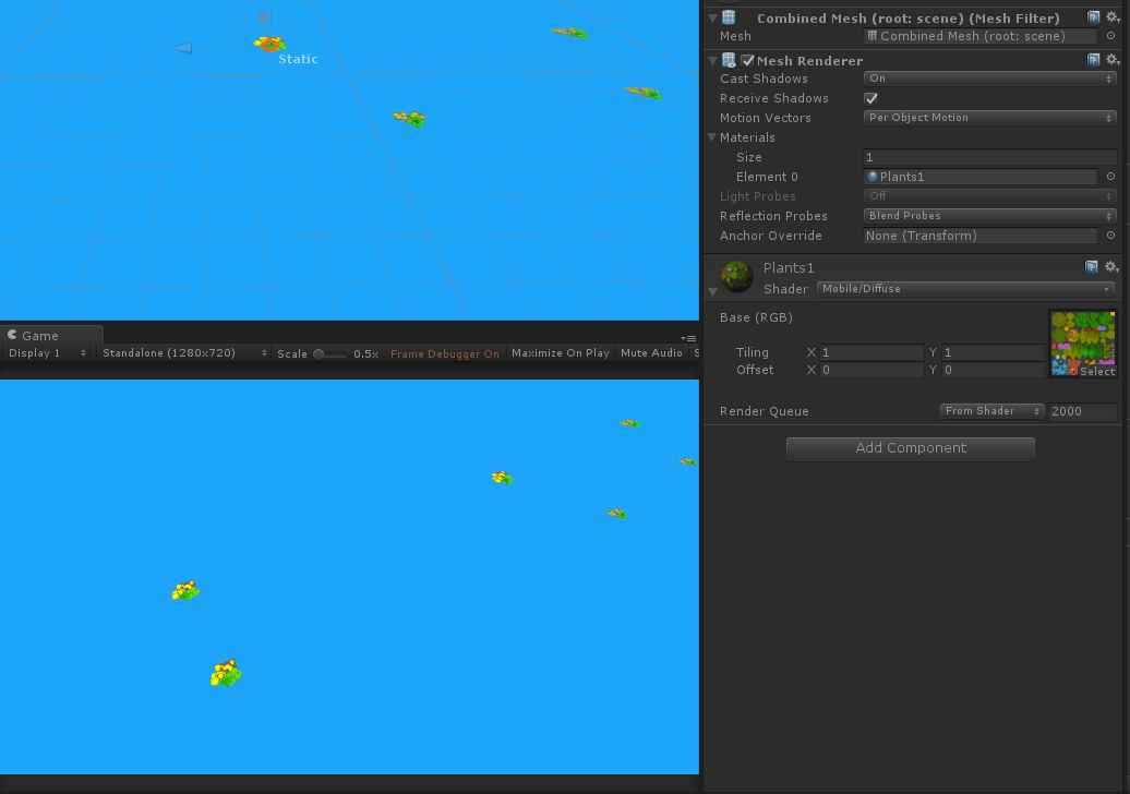 Q:我游戏场景里有些草,勾选了Batching Static 如下图:
