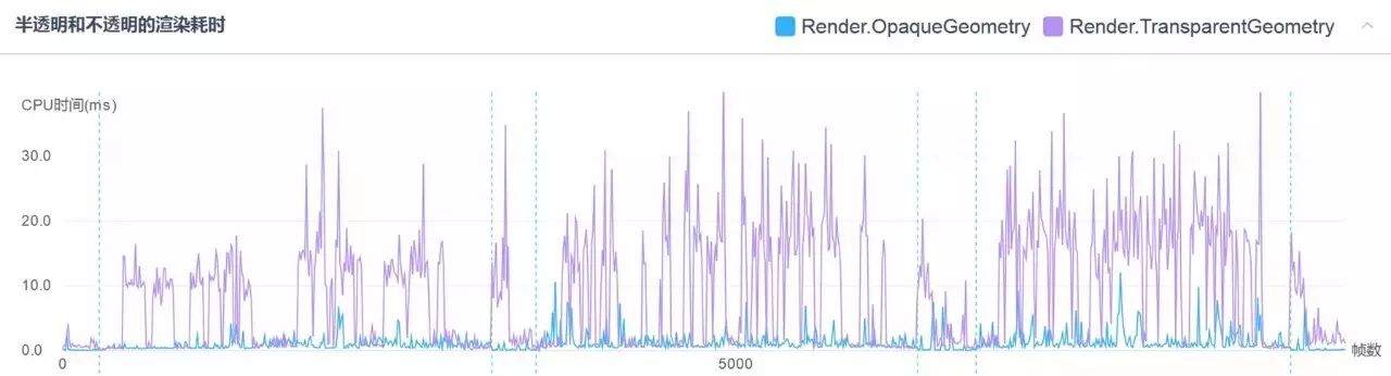 同时需要指明的是,并不是开启多线程渲染就一定会出现质的飞越,因为我们也看到一些项目(特别是使用了UGUI的项目)在开启多线程渲染后,其半透明耗时出现了非常不稳定的运行效果,如下图所示。因此,建议研发团队在开启多线程渲染后,多进行效率对比,密切关注多线程渲染带来的效率变化。关于多线程渲染性能,我们将在3月份举办的UWA Day 2017 大会上带来更为详细的性能分析,尽情期待!