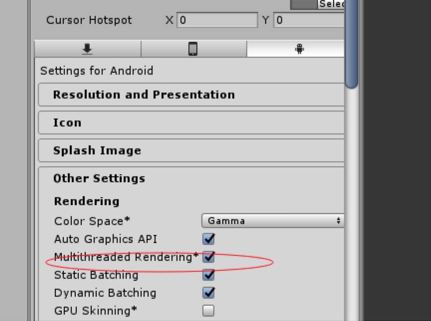 Q:在Android平台上,PlayerSettings里开启/关闭Multithreaded Rendering,在性能和稳定性上有多大的区别? 一般是勾还是不勾?