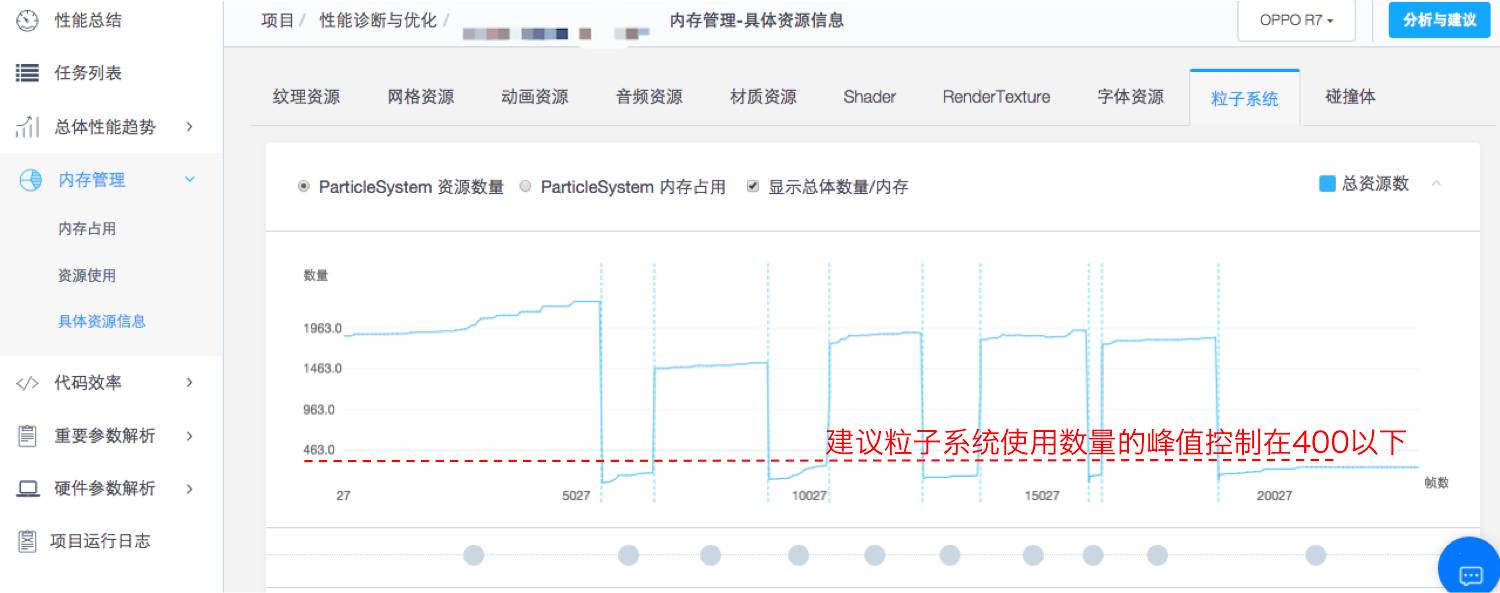 对于特效(特别是粒子特效)来说,我们暂时并没有发现将UI界面和特效耦合在一起,其加载耗时会大于二者分别加载的耗时总和。因此,我们仅从优化粒子系统加载效率的角度来回答这个问题。粒子系统的加载开销,就目前来看,主要和其本身组件的反序列化耗时和加载数量相关。对于反序列化耗时而言,这是Unity引擎负责粒子系统的自身加载开销,开发者可以控制的空间并不大。对于加载数量,则是开发者需要密切关注的,因为在我们目前看到的项目中,不少都存在大量的粒子系统加载,有些项目的数量甚至超过1000个,如下图所示。因此,建议研发团队密切关注自身项目中粒子系统的数量使用情况。一般来说,建议我们建议粒子系统使用数量的峰值控制在400以下。