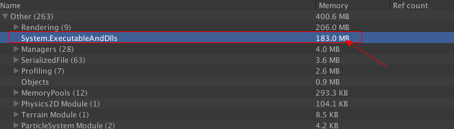Profiler中的System.ExecutableAndDlls如何优化占用