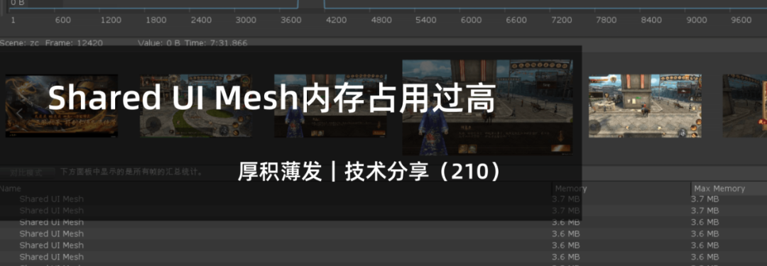 不隐藏缓存池UI时,Shared UI Mesh内存占用: