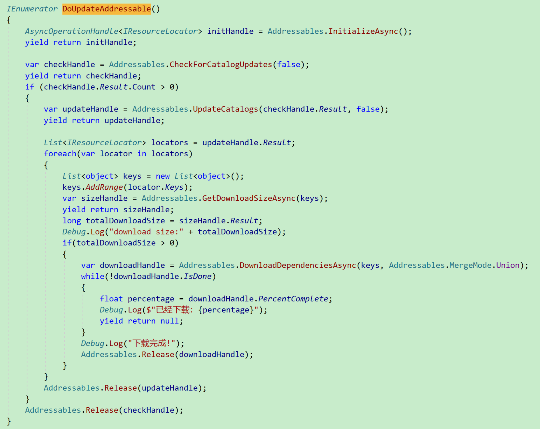1. Addressable的热更新更像是边玩边下载的方案,并且还需要按照特定的部署方式。对一些资源很大的游戏来说,一般都是启动时集中下载,把所有的增量资源打包成Zip,下载解压到persistentDataPath目录中。是不是如果把RemoteLoadPath设置为file://的地址,就可以先尝试加载增量资源,再加载包内地址呢?