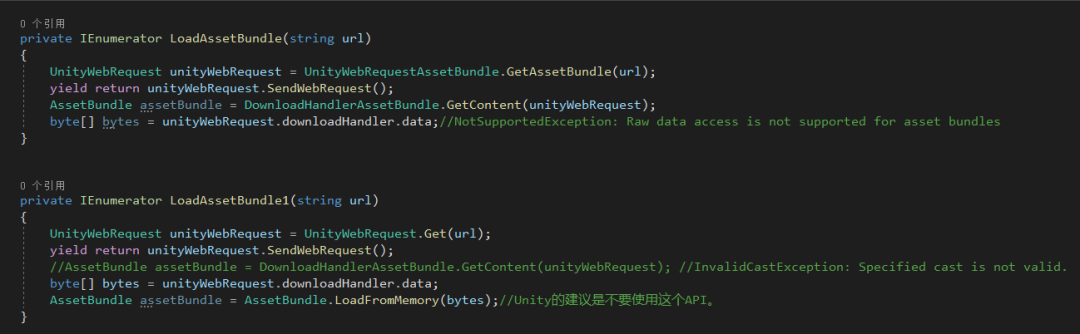 Q:如何通过UnityWebRequest API 下载AssetBundle并进行本地缓存?最近我想实现此功能,我的思路是下载AssetBundle之后,再拿到byte[],之后再写入本地。我使用了两种方法: