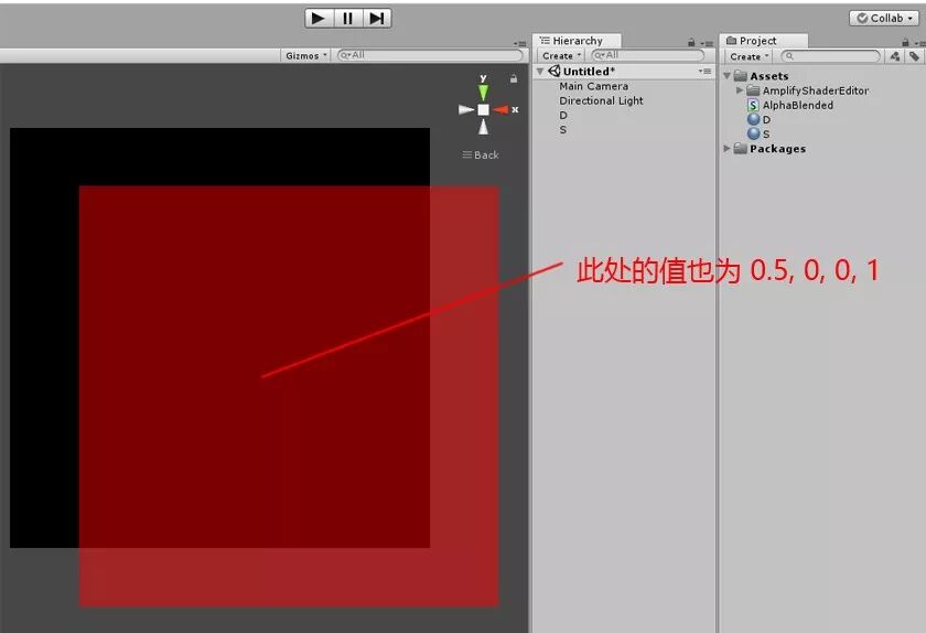按照Shader中的Alpha blended的算法,Oa=Sa*Sa+Da(1-Sa),最终颜色O的Alpha值为0.25+0.5=0.75,不知道是不是我自己哪里算错了。