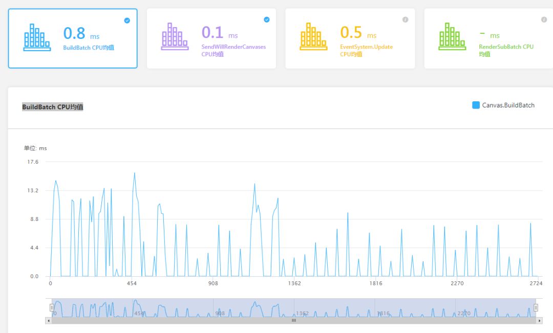 A:我们测试了空场景下一个文本每秒钟更新的case,在小米5X上测试,发现确实会有很高的BuildBatch耗时。
