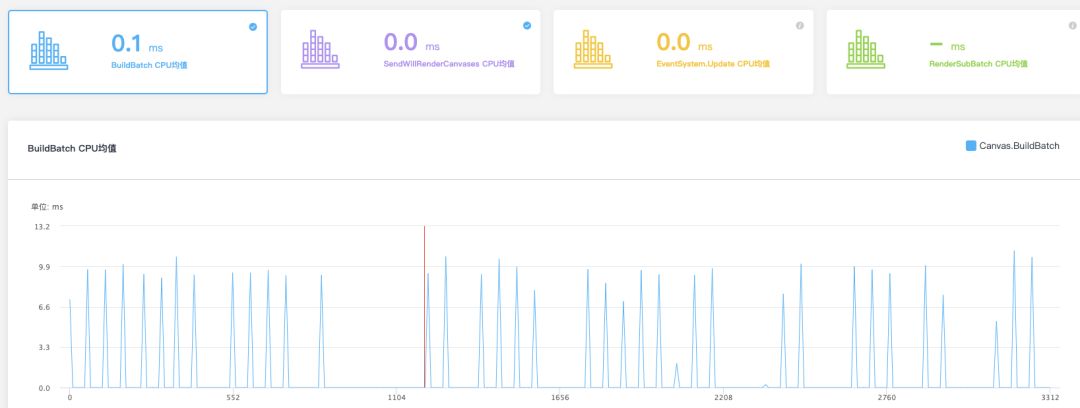 相对应的,在BuildBatch耗时高的这一帧,WaitForTargetFPS耗时只有0.01ms。
