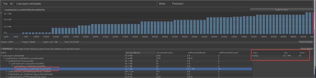 Q:使用UWA GOT测试游戏挂机的Mono内存增长情况。发现LuaInterface.LuaFileUtils:ReadZipFile这里常驻的内存一直在增加。