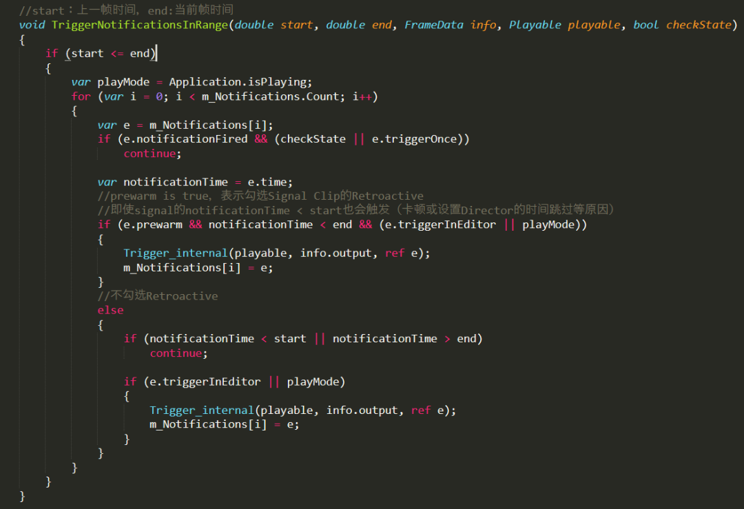 A:勾上之后是会执行,具体逻辑可参考TimeNotificationBehaviour脚本(Timeline中Signal Track的mixer逻辑脚本),如下做了简单注释: