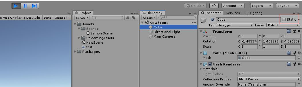 Q:请问一下,场景中勾了Static的物体,当场景打成AssetBundle后加载。