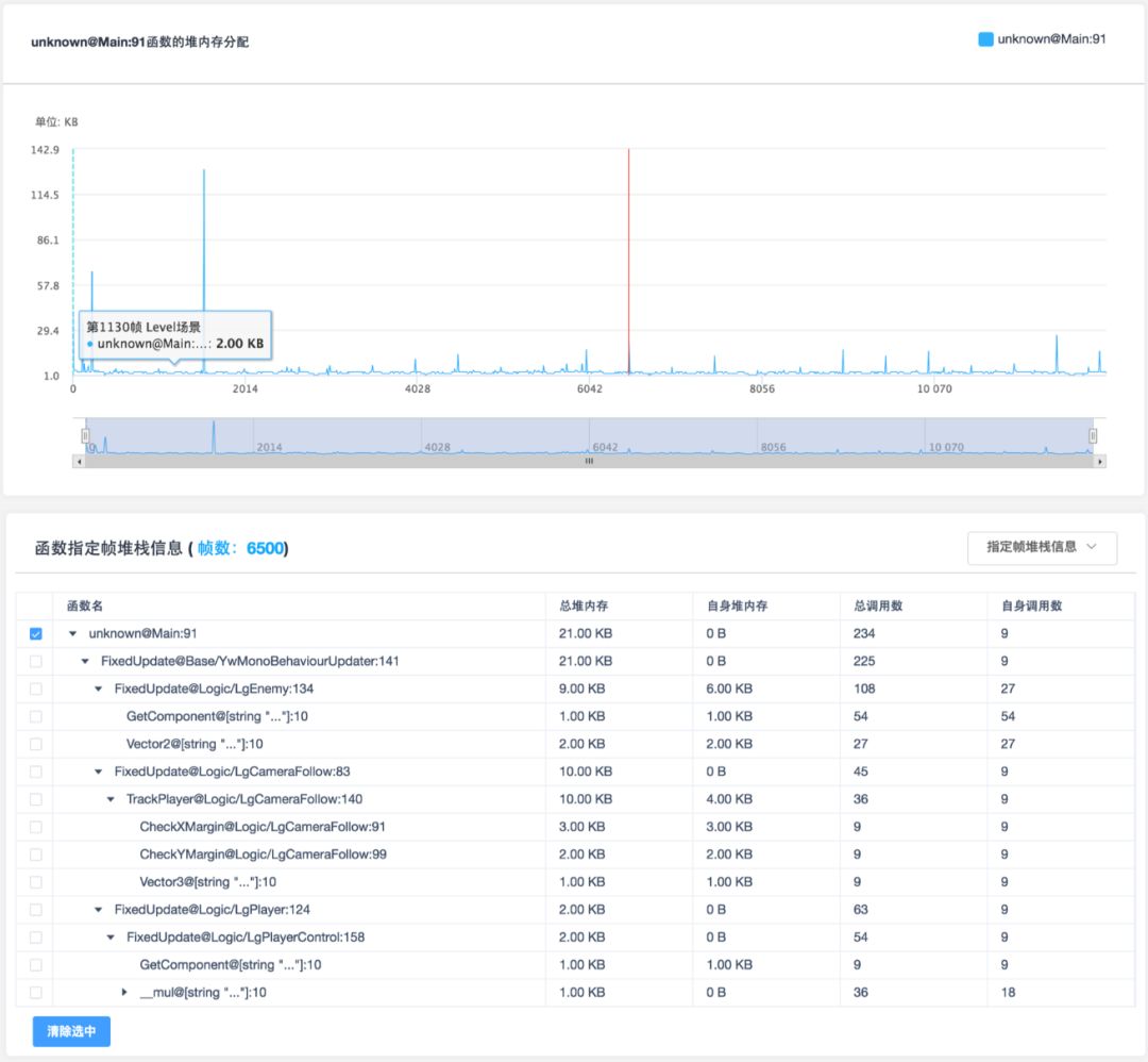 每一帧的具体Lua堆内存分配查看: