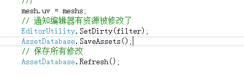 Q:修改模型的UV信息,用了AssetDatabase.SaveAssets()保存,但是重启Unity后还原了,请问怎么保存?打开FBX查看信息是导会到Max看还是什么?EditorUtility.SetDirty已经调用了。